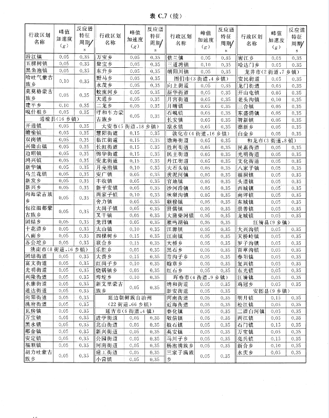附件:《吉林省城镇Ⅱ类场地基本地震动峰值加速度值和基本地震动加速度反应谱特征周期值列表》